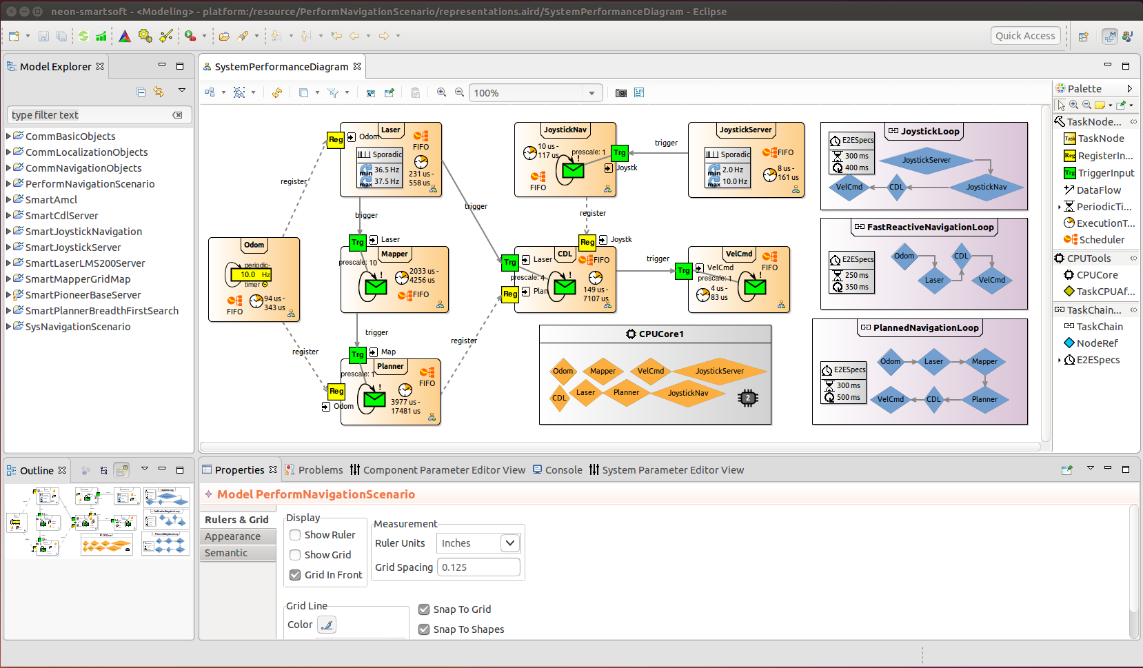 The main concern in these meta-models is to specify application-specific (often non-functional) system properties. This is considered as an important aspect in RobMoSys, which is however sparsely addressed in robotics research. One of the core publications that addresses this issue for a narrowed problem domain, namely for designing causal dependencies and overall end-to-end delays in a system, can be found here: