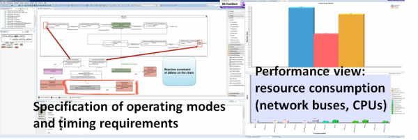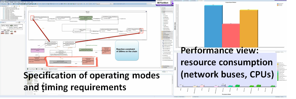 Further modeling views are provided by additional components of Papyrus4Robotics. For example, the performance view is featured by Papyrus Architect, a Papyrus4Robotics module dedicated to explore quality attributes of architectures, with a focus on timing properties in real-time applications of embedded (robotic) systems. It leverages the MARTE (Modeling and Analysis of Real-Time Embedded systems) DSL for the specification of system architecture (functional/physical) and of timing properties. The performance view addresses the problem of evaluating the performance of candidate architectures with respect to attributes like hardware resource utilization.
