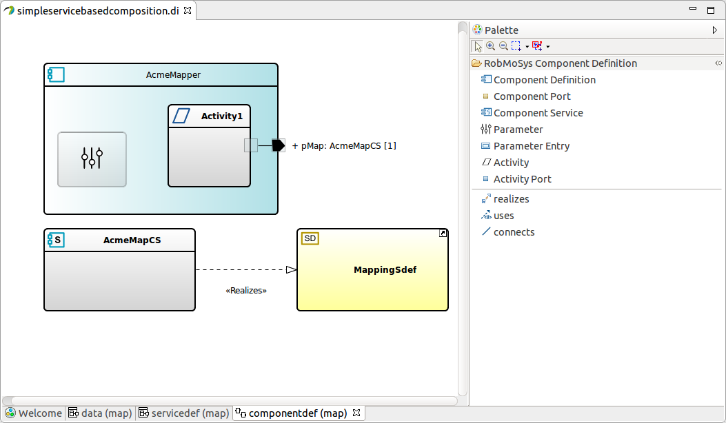 ) providing the mapping service. Aligned with the standard UML rules of interface realization, this is achieved by assigning the port a ComponentService