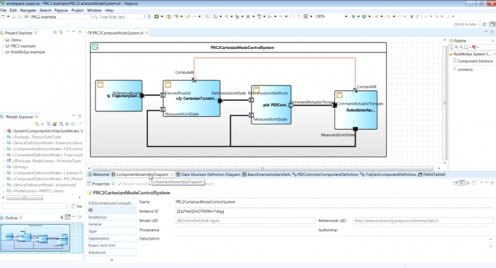 The eITUS approach is explained by using a Cartesian Mode Control System as a use case scenario, whose model in Papyrus is depicted in Figure 4.