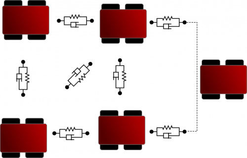 In Fig. 13 the simplest platooning use case is shown: two robots are controlled via virtual spring-dampers (impedance control).