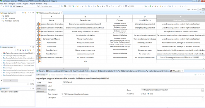 • A use case scenario based on Papyrus4Robotics and extended with safety concepts (e.g. failure mode) and safety analysis (FMEA and Fault Injection Views).