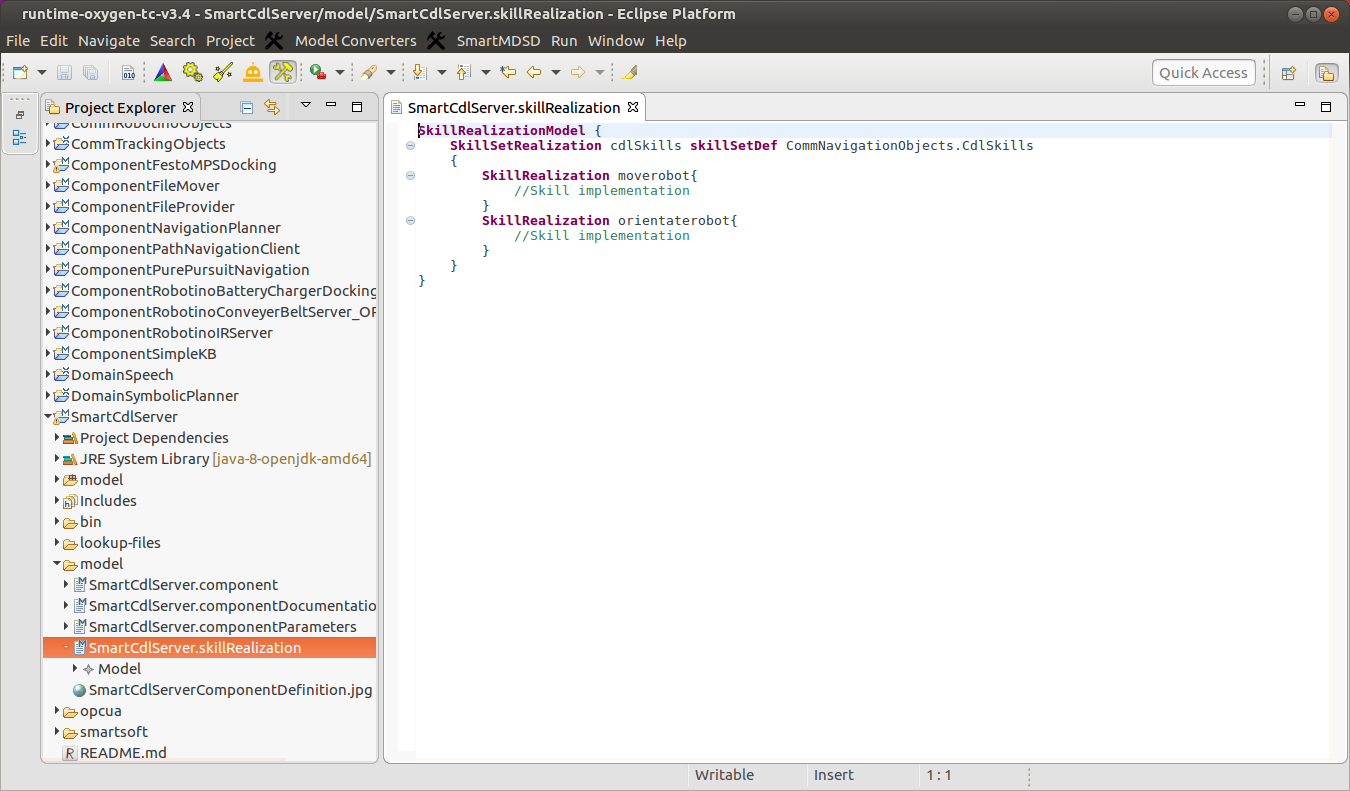 Skills are realized by software components. The below screenshot shows the skill realization as it is created by the Component Supplier role in a component project (Tier 3).